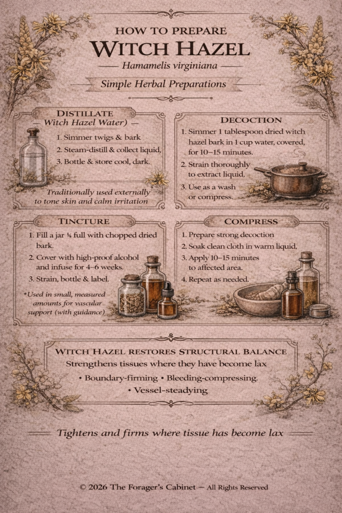 Each preparation emphasizes witch hazel’s role as a boundary-strengthening botanical.